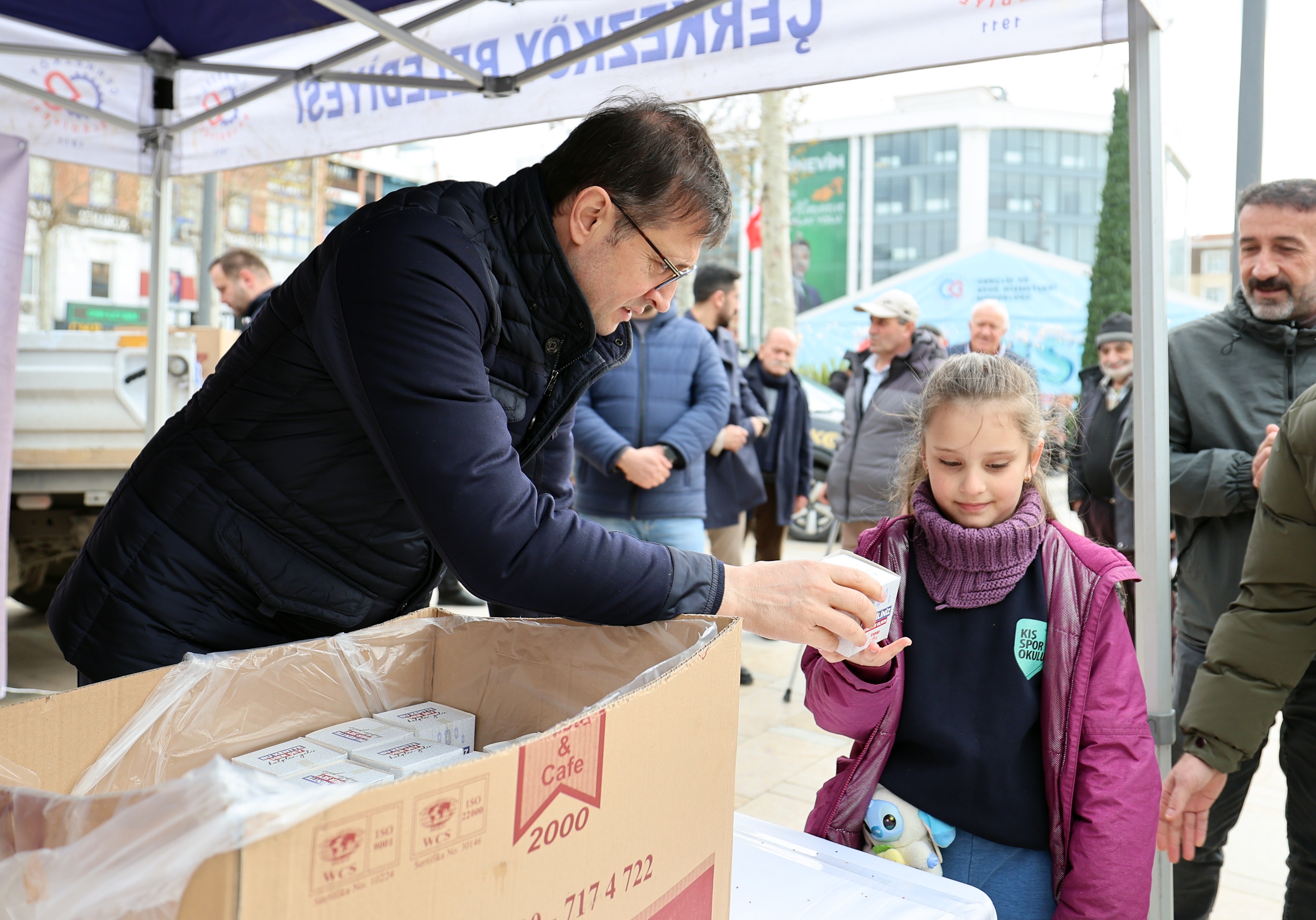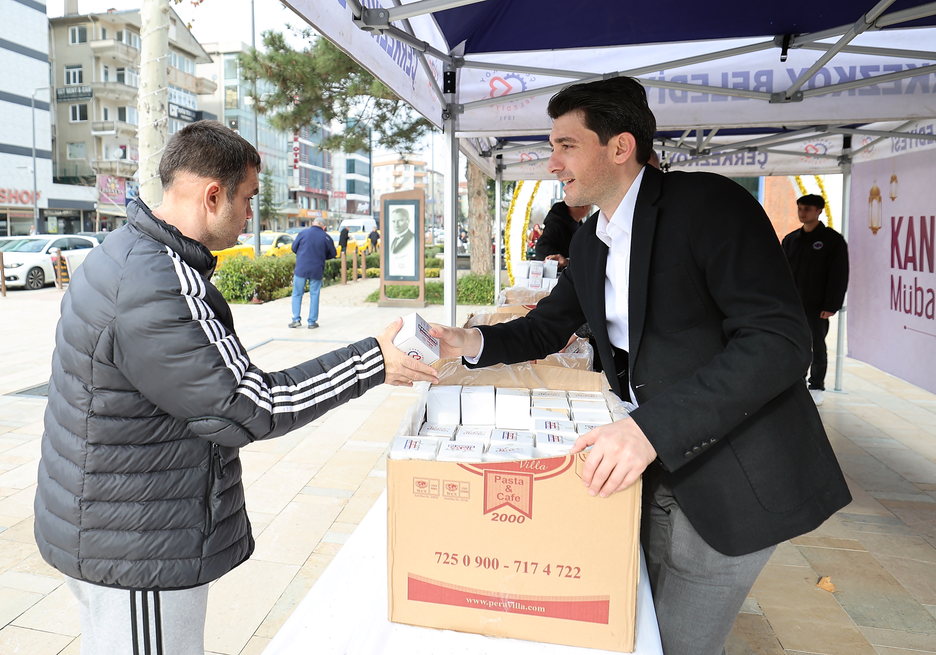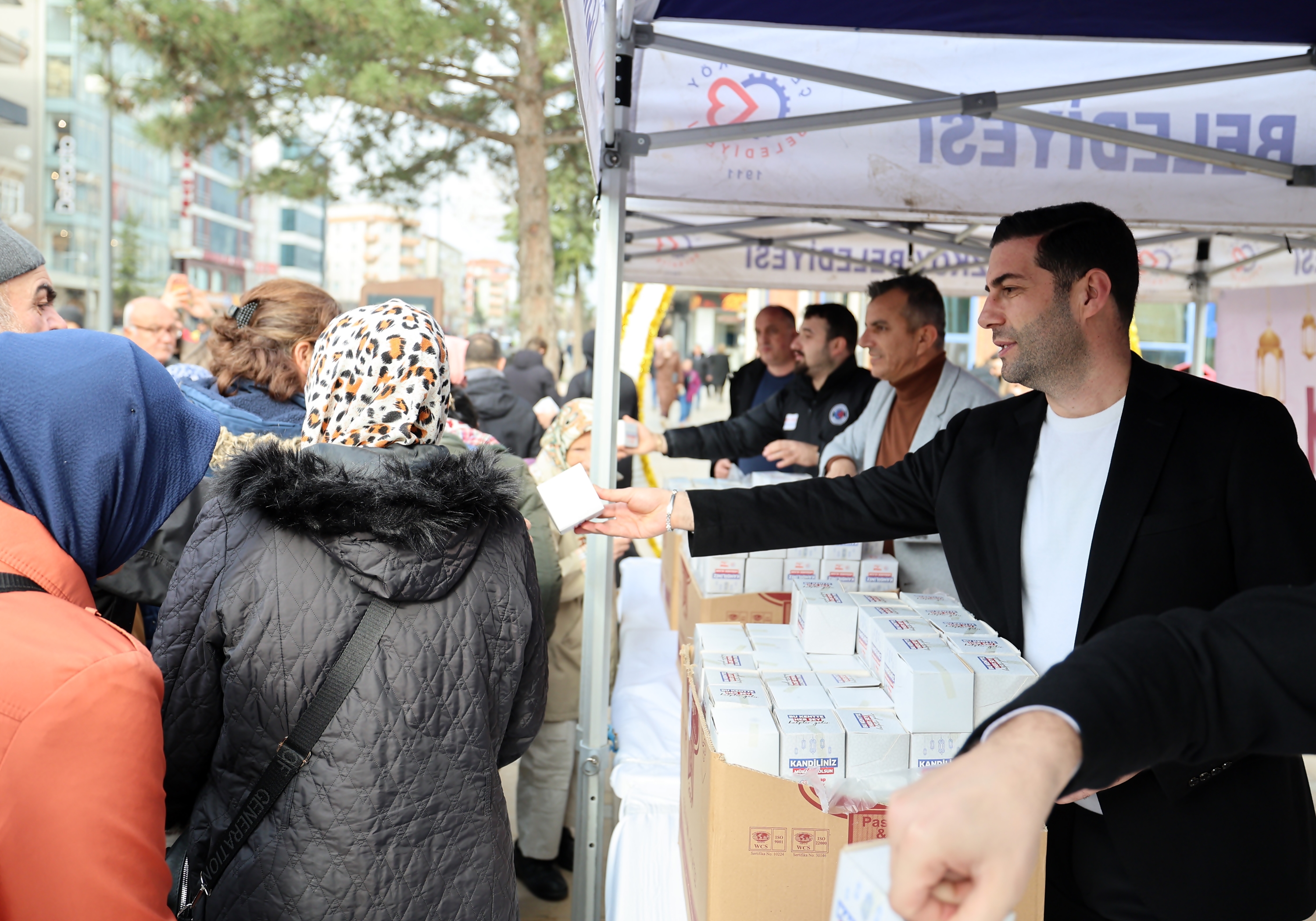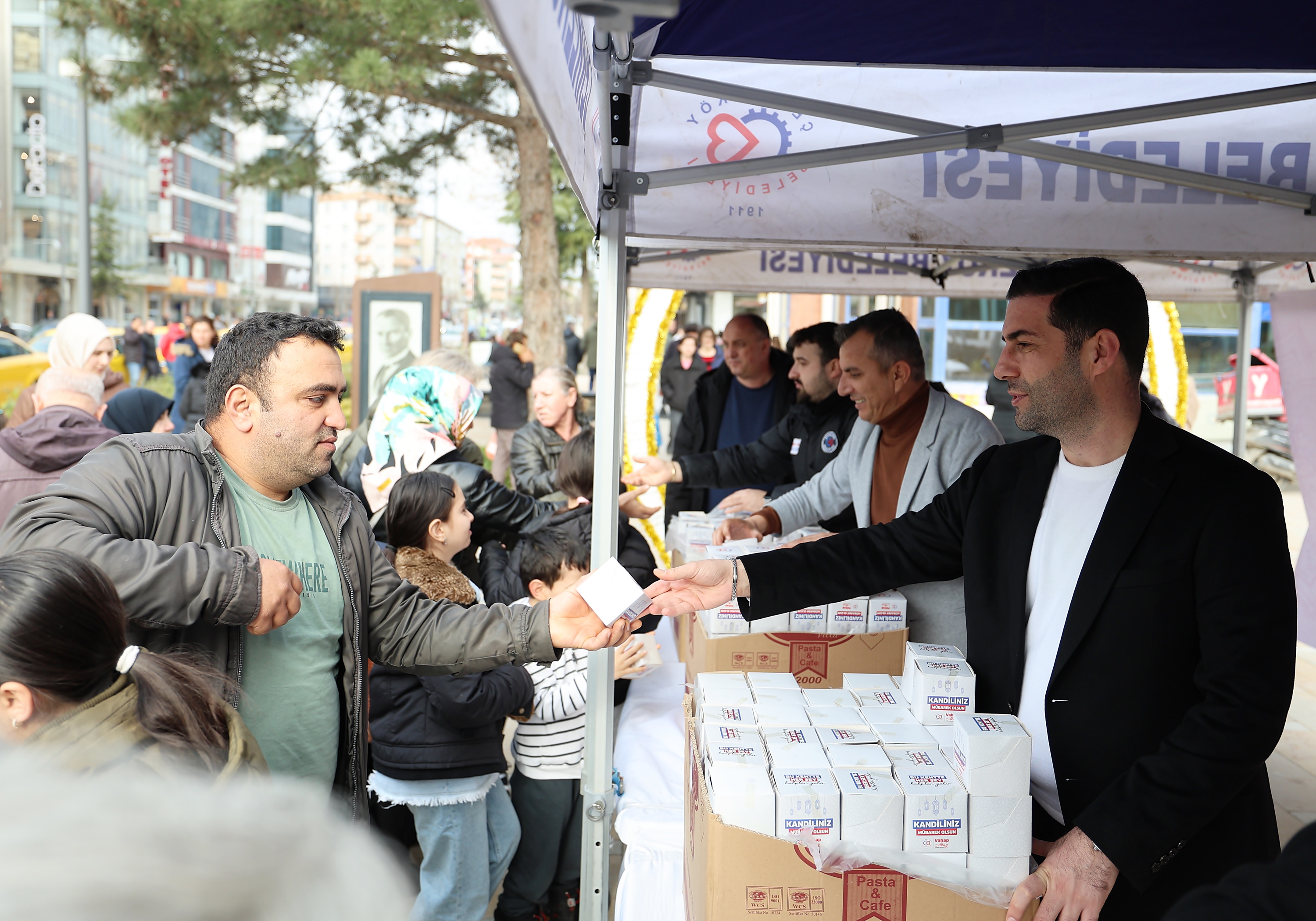 Çerkezköy Belediyesi tarafından Miraç Kandili dolayısı ile Cumhuriyet Meydanı’nda kandil simidi dağıtıldı.