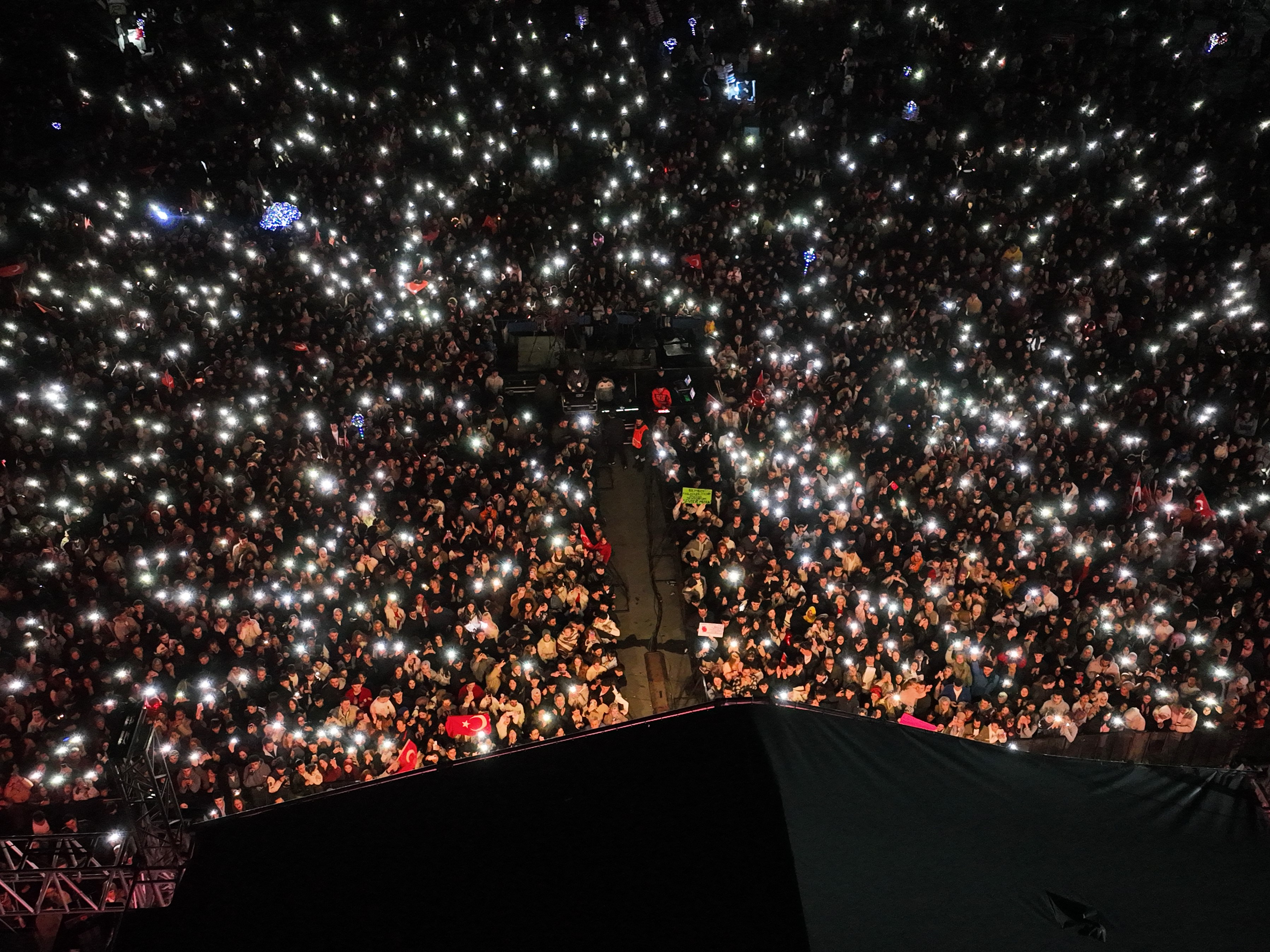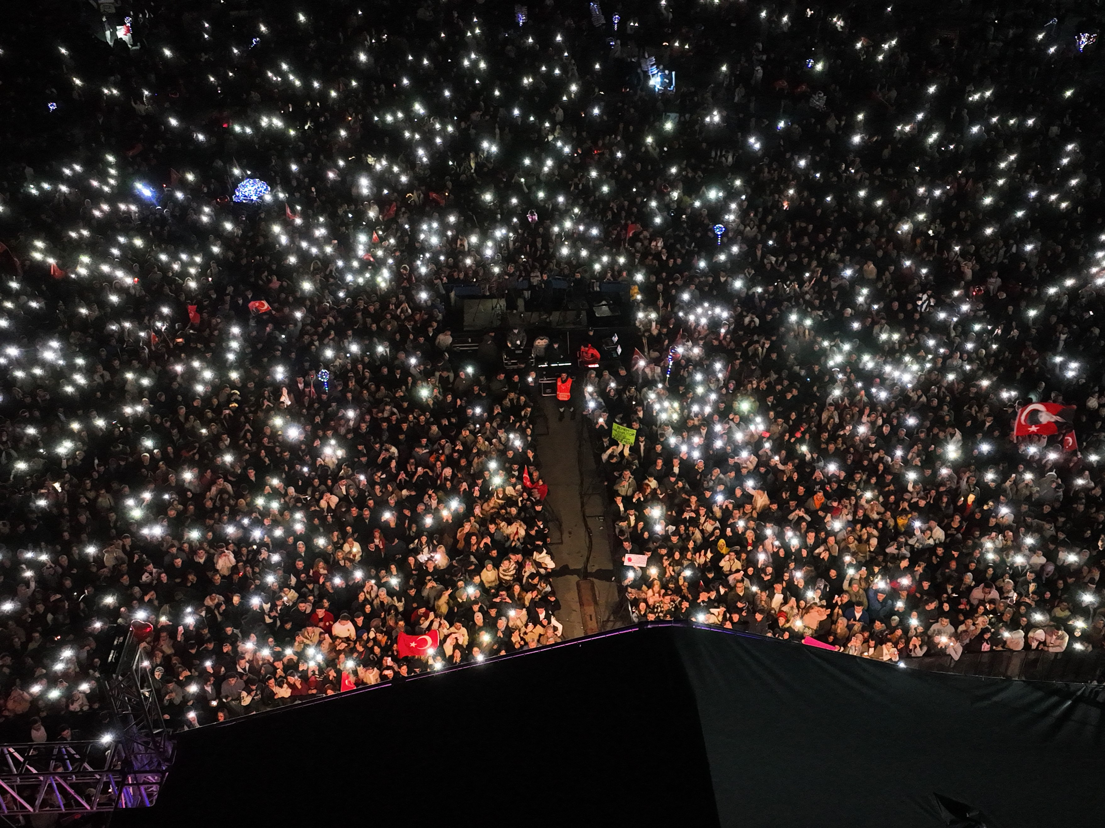 Ellerinde bayraklar ve meşaleler ile Kapalı Pazar Yeri önüne kadar marşlar söyleyerek yürüyen binlerce Çerkezköylü, Cumhuriyetimizin 102. Yıl coşkusuna ortak olurken, kortejin konser alanına varmasının ardından saygı duruşu yapıldı ve İstiklal Marşımız hep bir ağızdan okundu. Cumhuriyetimizin 102. Yılı anısına hazırlanan videoların izlenmesinin ardından sahneye çıkan Belediye Başkanımız Vahap Akay sözlerine “Karanlığın en derin anında yanan bir ışık Cumhuriyet” diyerek başladı.