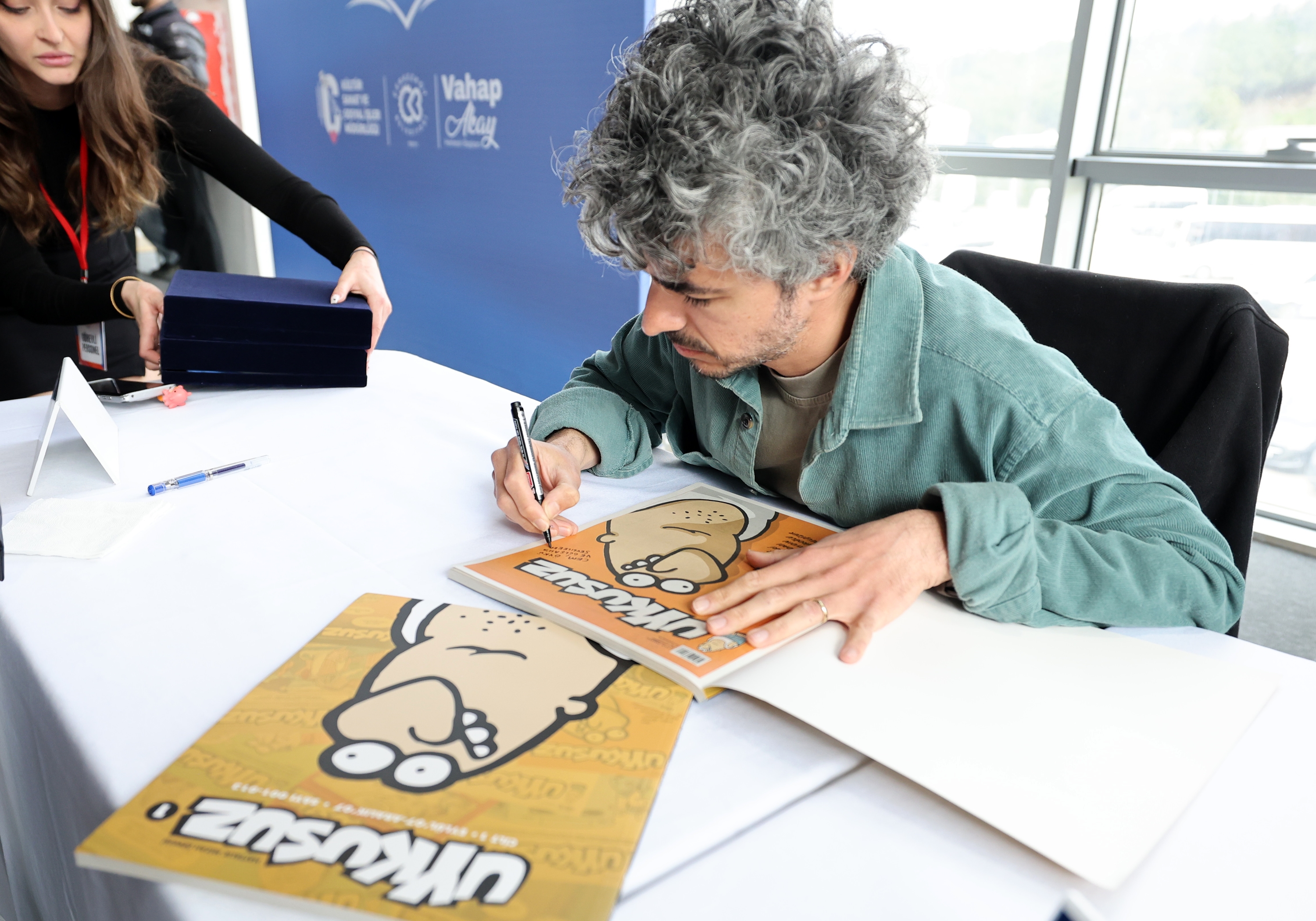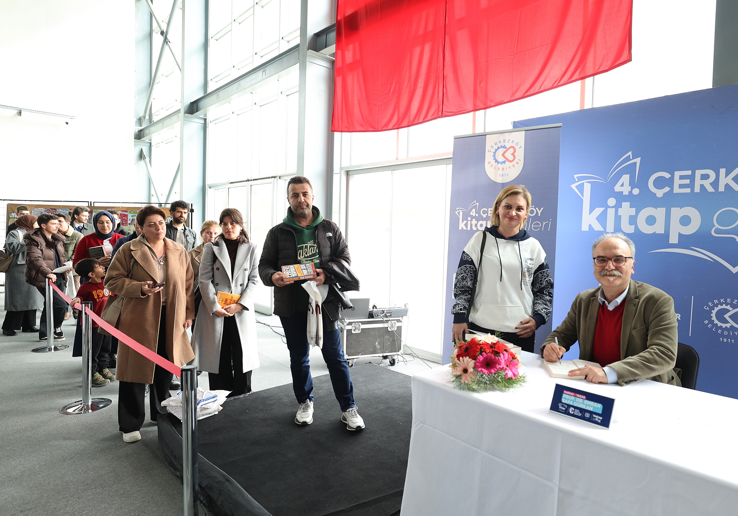 4’üncü Kitap Günleri’nin son günü olan Cumartesi günü ise Atatürk Kültür Merkezi Fuaye Alanı’nda saat 14.00’da Tarihçi-Yazar Prof. Dr. Emrah Sefa Gürkan’ın söyleşisi ve ardından imza günü etkinliği düzenlendi. Başkanımız Vahap Akay, “Ayrıca Atatürk Kültür Merkezimizde saat 14.00’da Uykusuz Dergisi çizerleri Uğur Gürsoy, Funda Budacı, Cihan Ceylan, İlker Altungök, Cem Güventürk ve Cem Dinlenmiş imza günü etkinliği düzenlediler. Yine konuk yazarlar Tuncay Dağlı, Haluk Ecevit, Muharrem Kalkan, Ercan Duygu, M. Ali Işıkgör, Namigar Durak Başbuğoğlu, Tuğçe Biryol, Hamdiye Özer Okudan, Recep Atmaca, Abdülhamit Albez ve Doğukan Mizrak da eserlerini imzaladılar” dedi. Başkanımız Akay, Çerkezköy Belediyesi 4. Kitap Günlerine katılan tüm yazarlara ve 3 gün boyunca 4. Kitap Günleri etkinliğine katılan kitap tutkunlarına teşekkür etti.