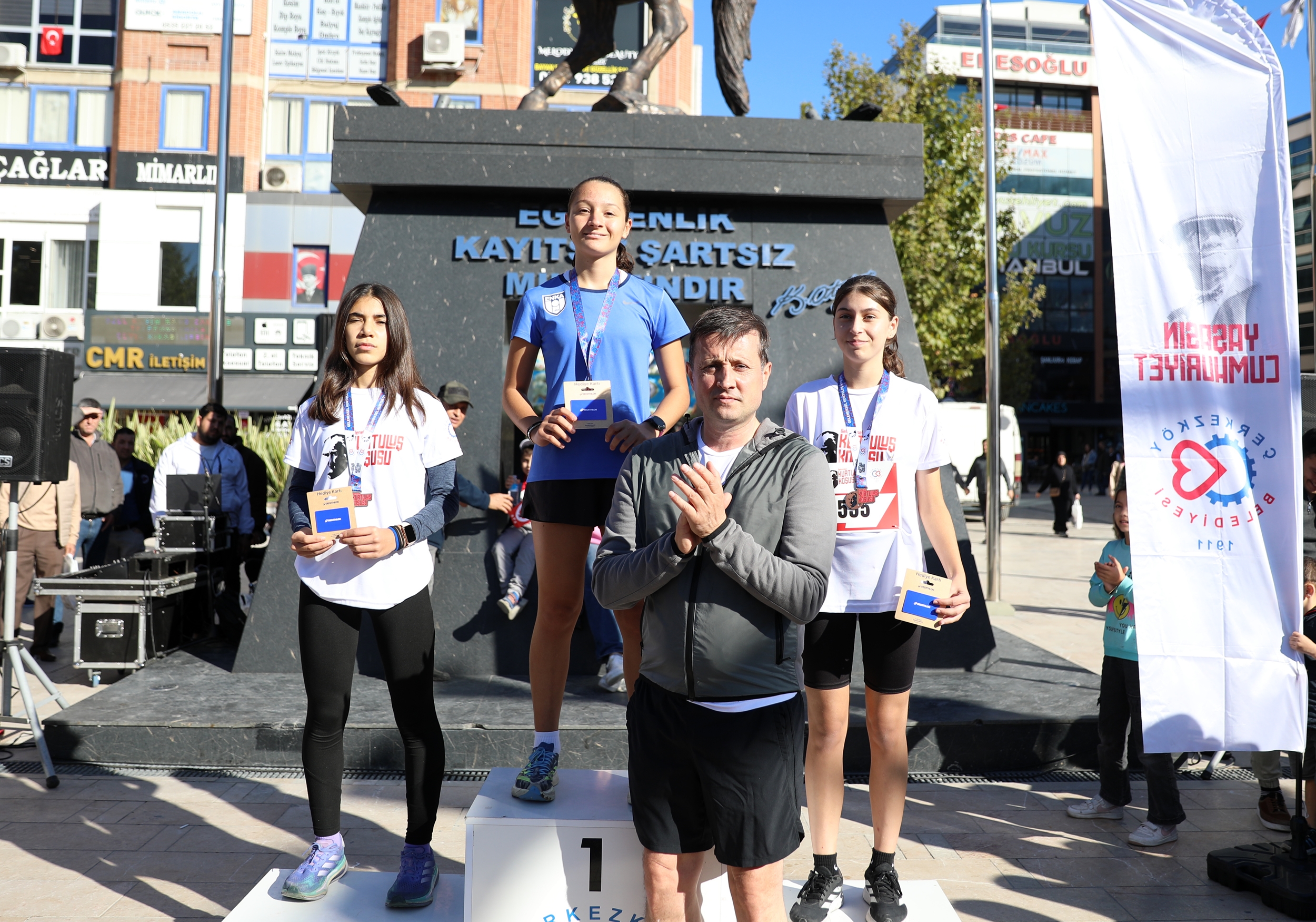Çocuklar ve Yetişkinler olmak üzere 2 kategoride yapılan 11. Kurtuluş Koşusunda Kadınlar Kategorisi’nde Tuba Yenigün 1’inci olurken; Damla Çelik 2’nci, Buse Mayda ise 3’üncü oldu. Erkekler Kategorisi’nin 1.’si Emin Berke Murathan olurken; Salih Teksöz 2’nci, İbrahim Karateker ise 3’üncü oldu. Ayrıca kısa mesafede düzenlenen Çocuk Kızlar kategorisinde Sümeyra Buse Albay birinci, Necla Arıcı ikinci, Tuana Gürkan üçüncü olurken, Çocuk Erkekler de ise Tarık Karabağ birinci, Yavuz demir ikinci ve Baran Sarıkaya üçüncü oldu. Kurtuluş Koşusunun tamamlanmasının ardından dereceye giren sporculara ödüllerini Çerkezköy Belediye Başkanımız Vahap Akay, Belediye Başkan Yardımcılarımız Gökay Keleşoğlu ve Yunus Erçin verdi.
