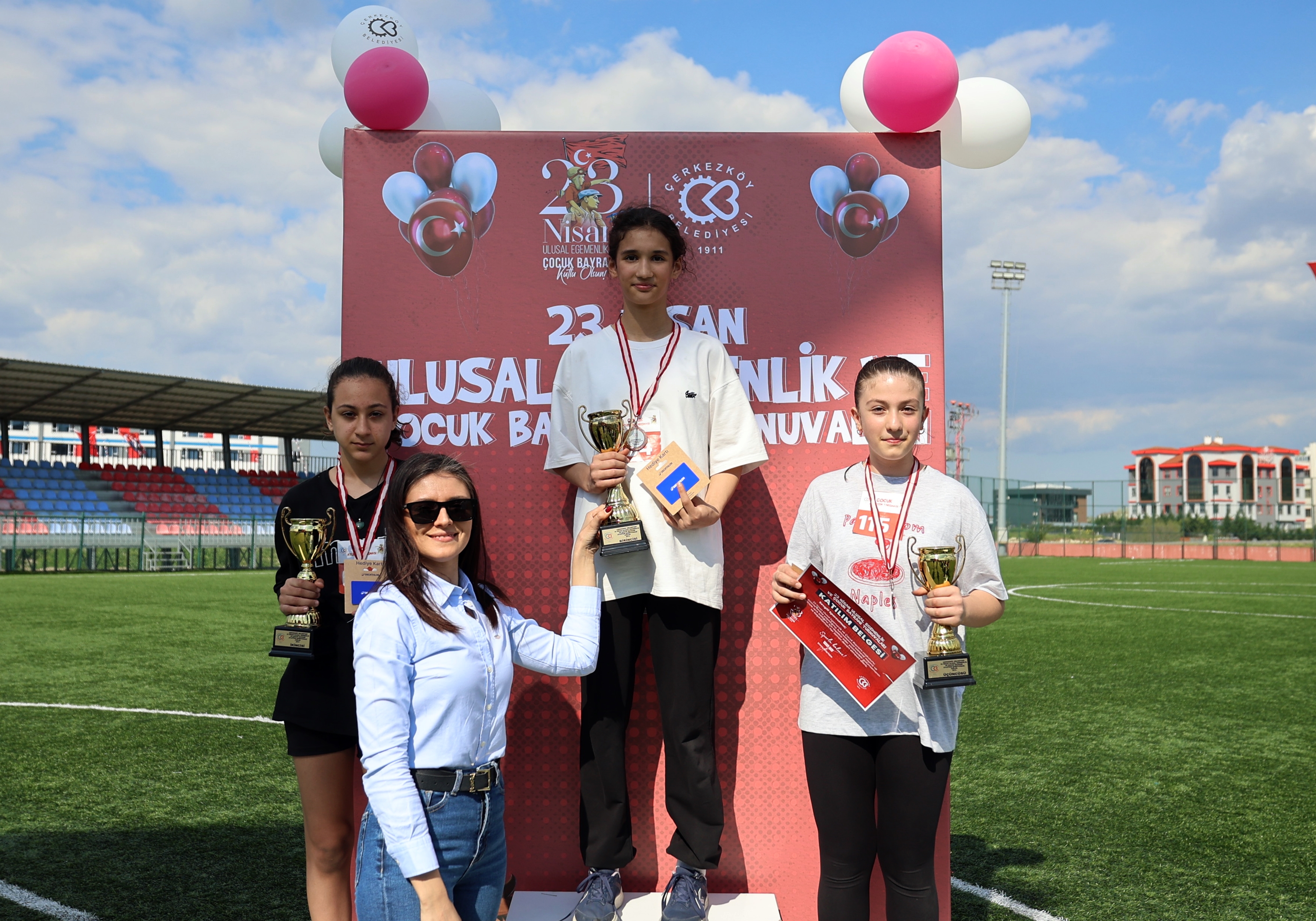 Atletizm yarışmalarının tamamlanmasının ardından dereceye giren sporculara kupa, madalya ve ödülleri Gençlik ve Spor Hizmetleri Müdürümüz Cansu Çutok, Uluslararası Atletizm Hakemleri Fikriye Yıldız ve Atletizm Tekirdağ İl Temsilcisi Barış Tıraşçı tarafından verildi. Etkinliğe katılan tüm sporculara yarışmalar süresince çeşitli ikramlarda bulunuldu.